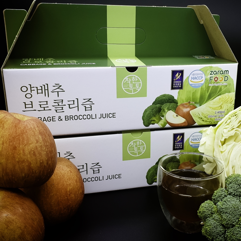 원재료 및 함량 : 양배추 90%(국내산),브로콜리농축액 8%(국내산),사과농축액 2%