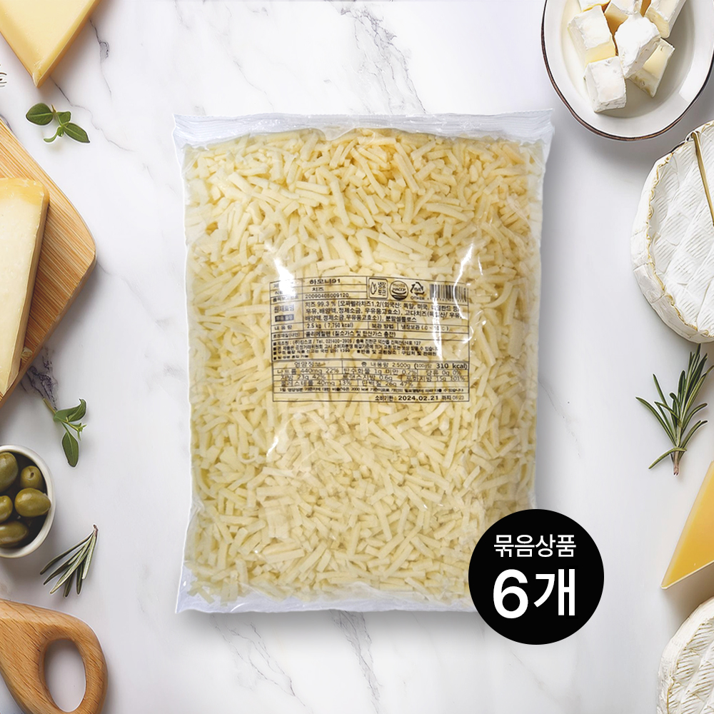 (주)디오에프앤씨 [6봉] 킹스코 하모니91 모짜렐라 피자치즈 자연100% 고다함유 냉장 2.5kg soldout